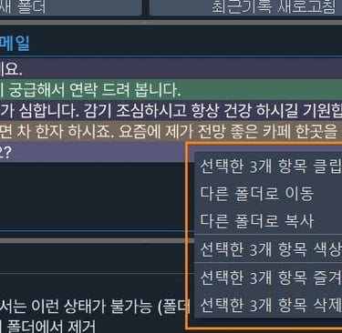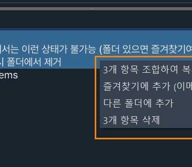 아래는 여러 항목을 선택하고 오른쪽 버튼을 눌렀을 때 나오는 메뉴입니다. 기본은 같지만, 여러 개를 선택하면 타이틀 편집 기능만 빠져있어요.