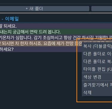 폴더 내에서는 드래그 앤 드롭으로 항목 순서를 자유롭게 변경할 수 있어 자주 쓰는 항목을 상단에 배치할 수 있어요.