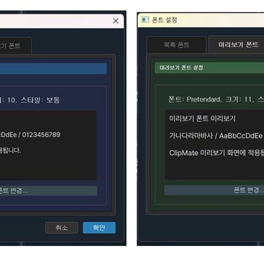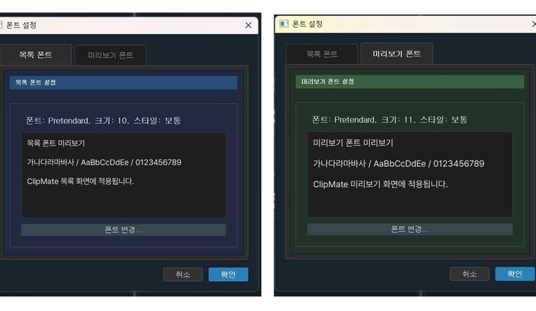 우측 화면은 ClipMate의 폰트 설정 화면입니다.
