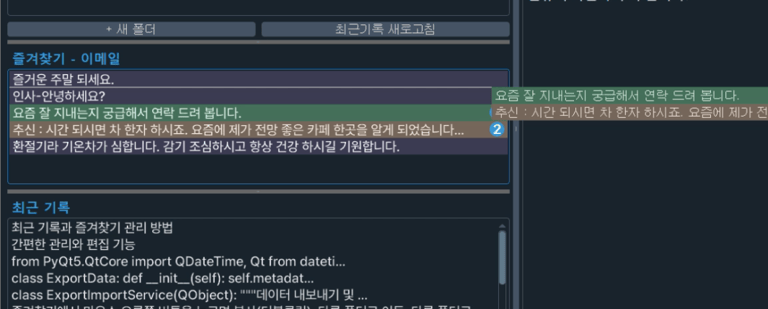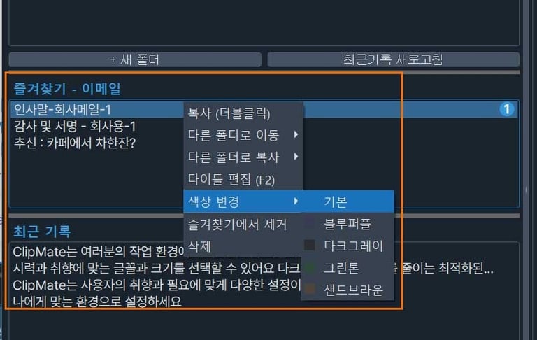반복해서 사용하는 텍스트는 즐겨찾기에 추가하고, 주제별로 폴더를 만들어 체계적으로 관리하세요.
