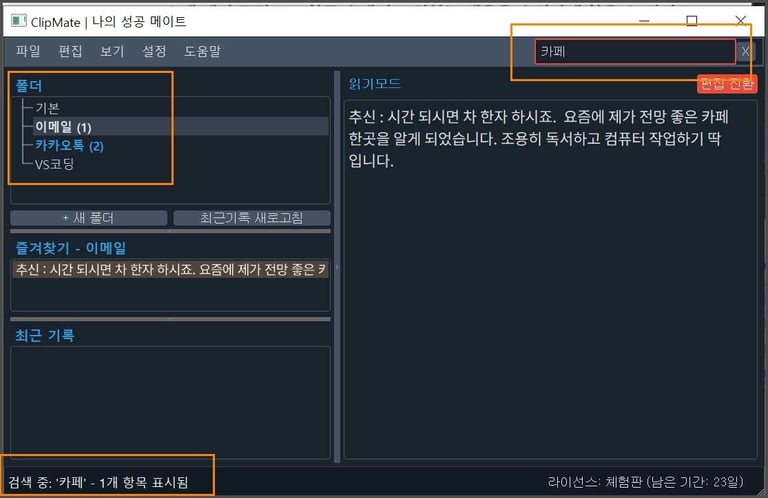 특히 항목을 더블클릭하면 바로 복사되니까, 이것만 기억하면 이 프로그램은 이미 마스터한 거예요.